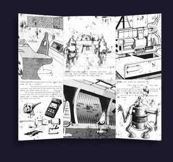 The trifold is intended give players in a scifi game a spaceship they can pilot.